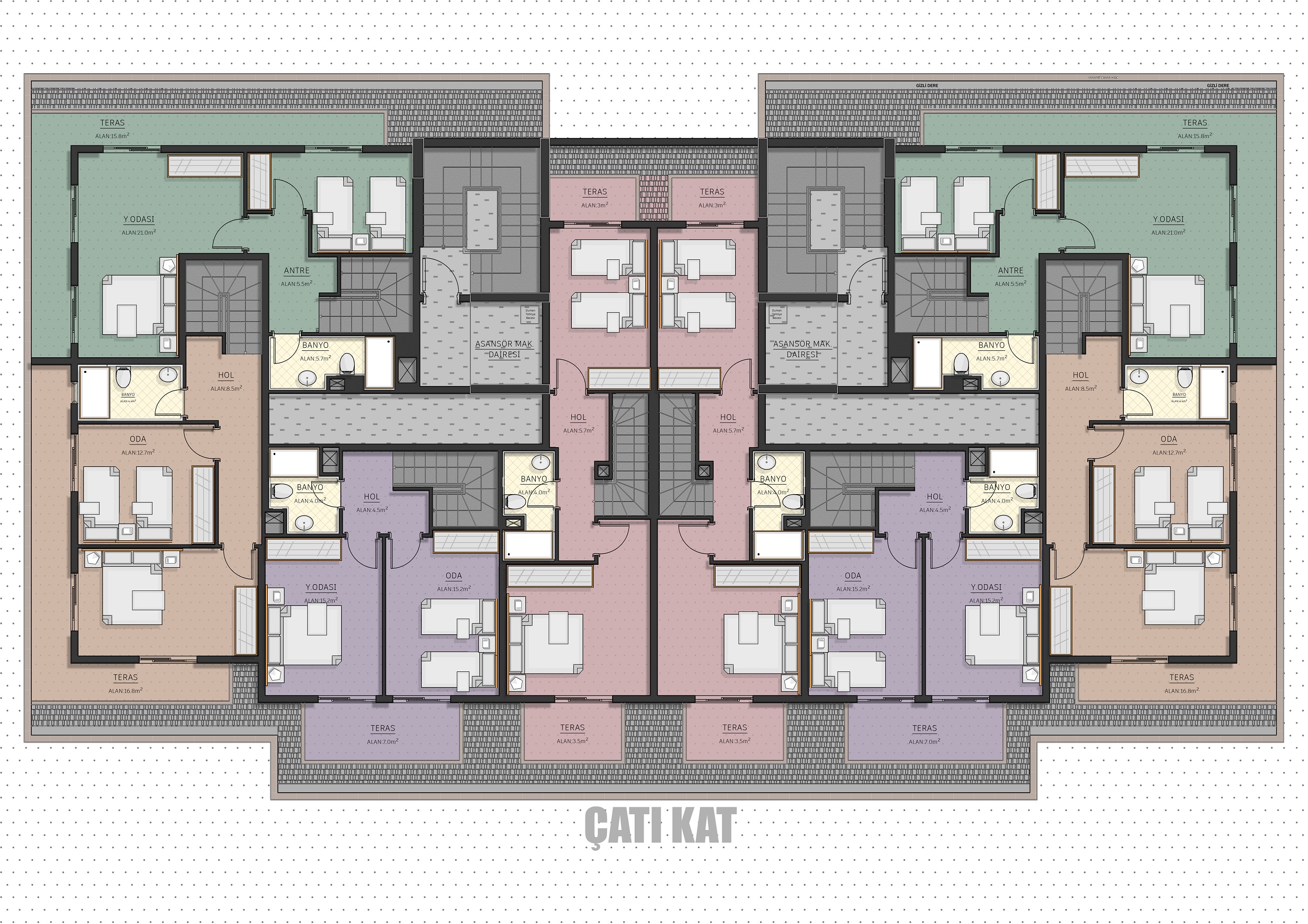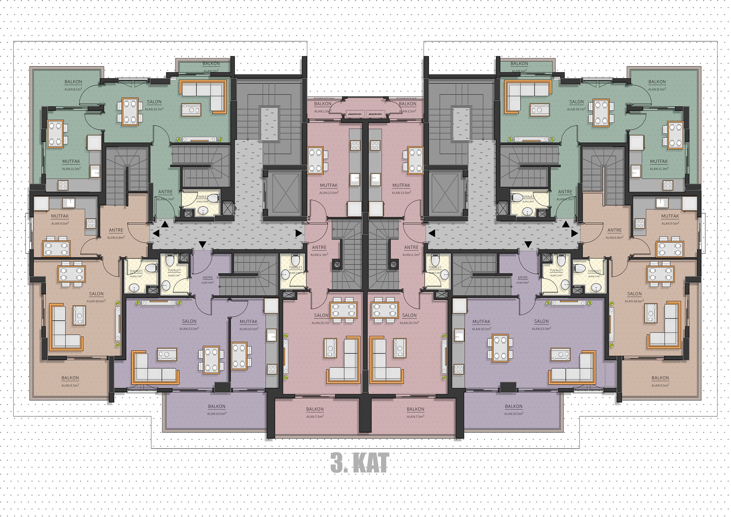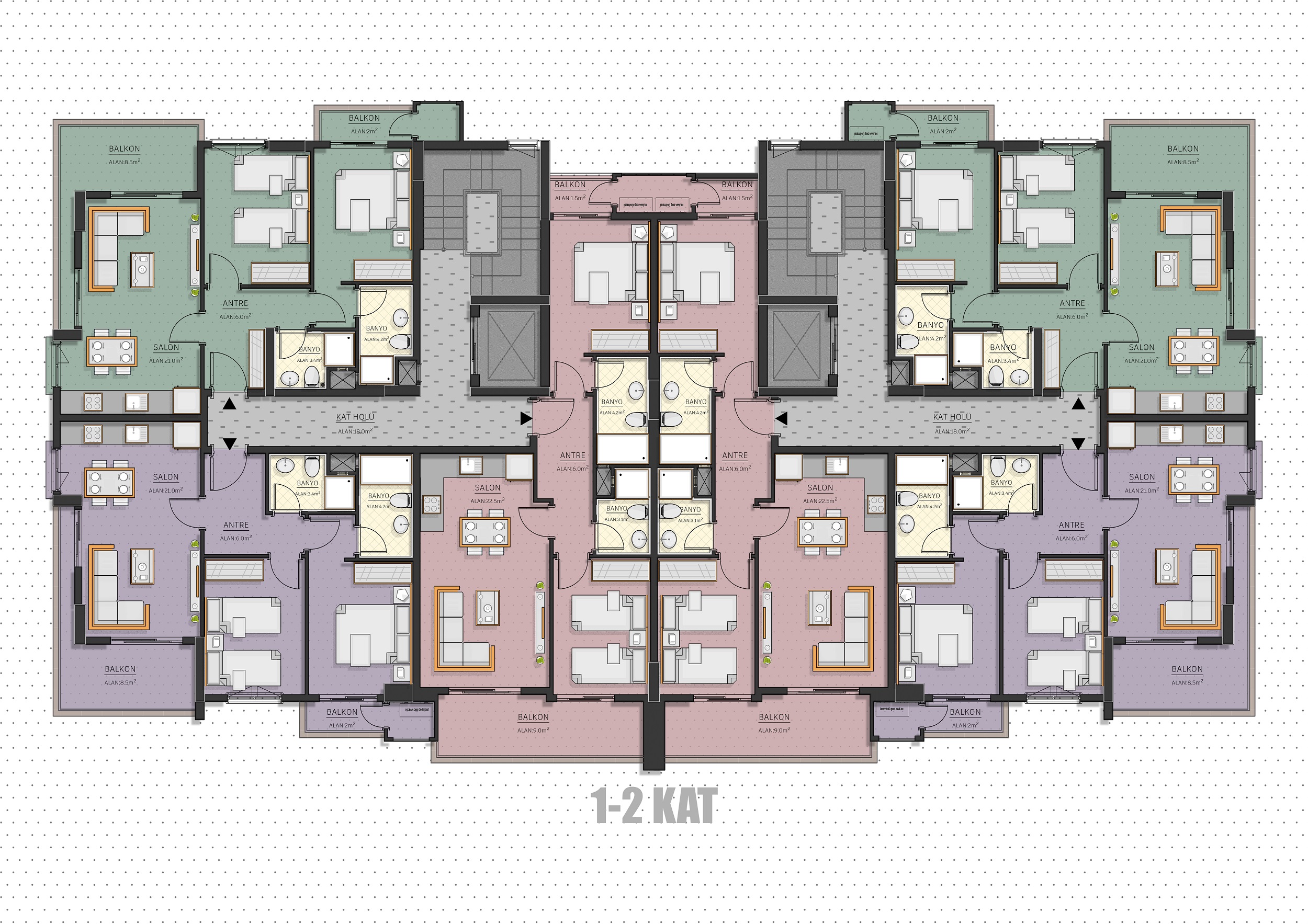 The floor plans have been prepared with meticulous attention to meet all your needs. In your dualfacade apartments, natural airflow and maximum comfort have been achieved by calculating natural light usage throughout the day.